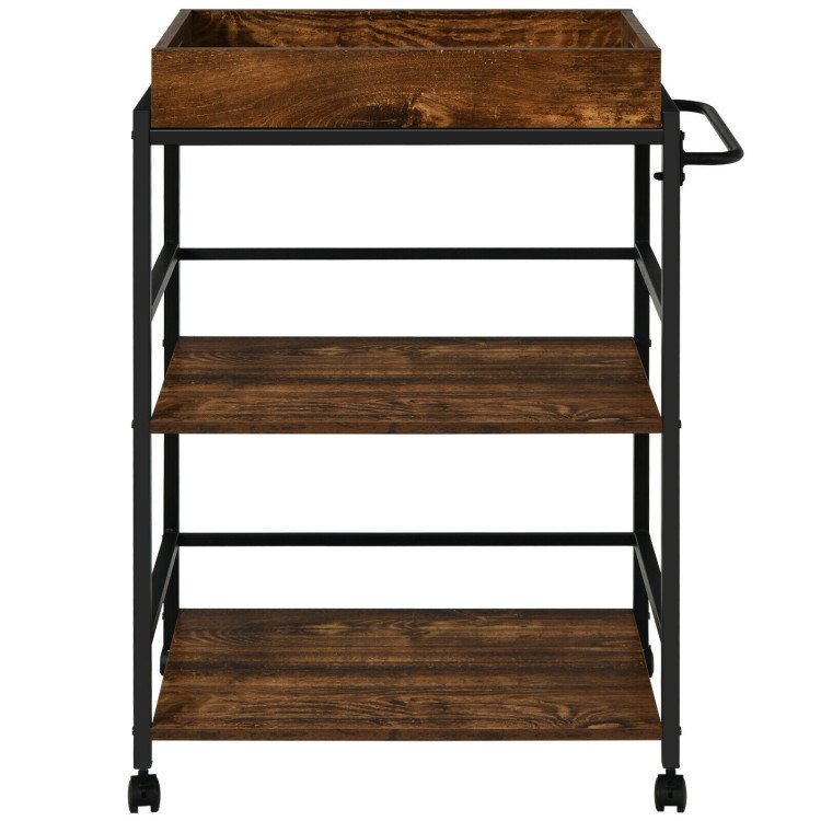 3-Tier Kitchen Serving Bar Cart with Lockable Casters and Handle Rack for Home Pub