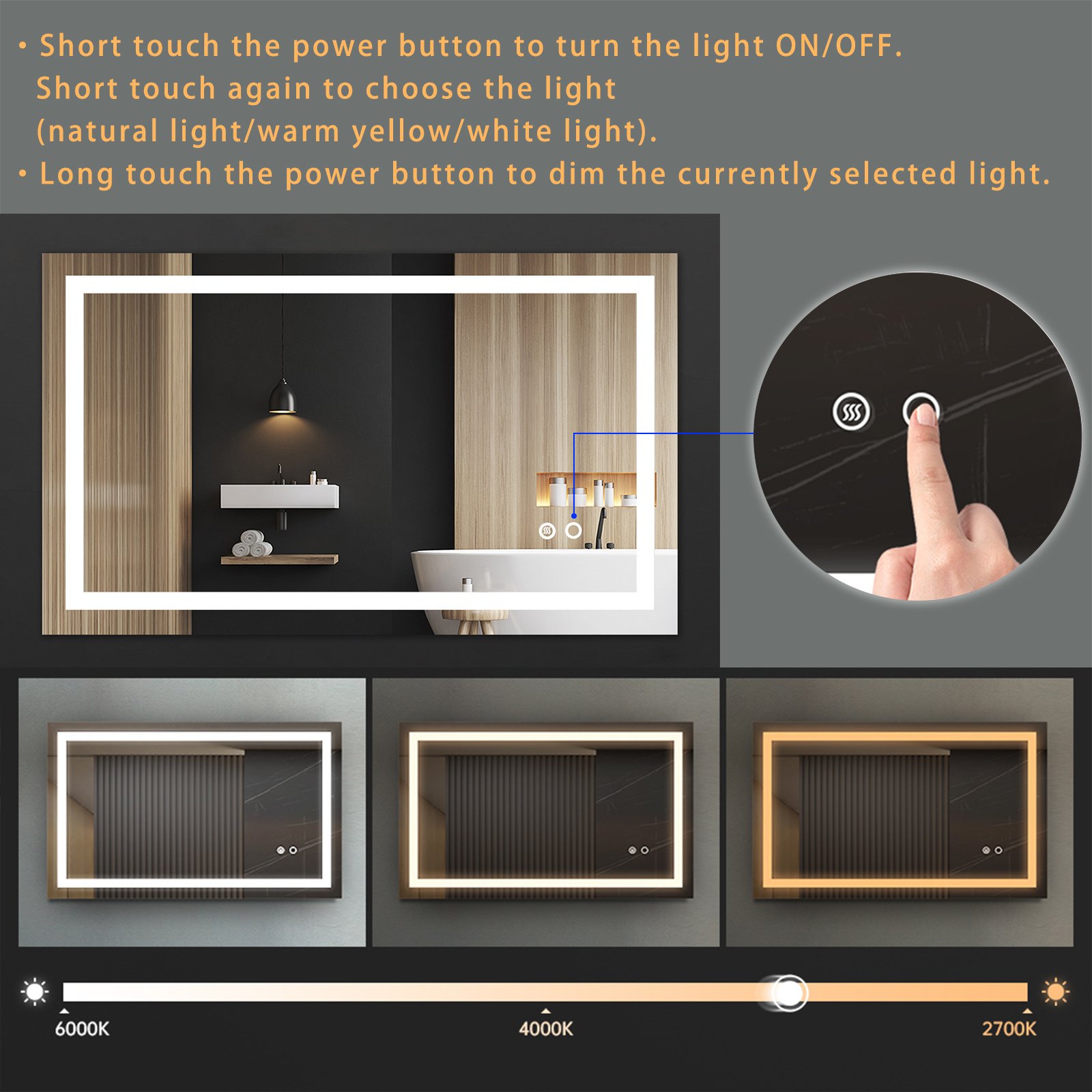 LED Mirror with Touch Buttons control; Anti-Fog LED bathroom Vanity Mirror